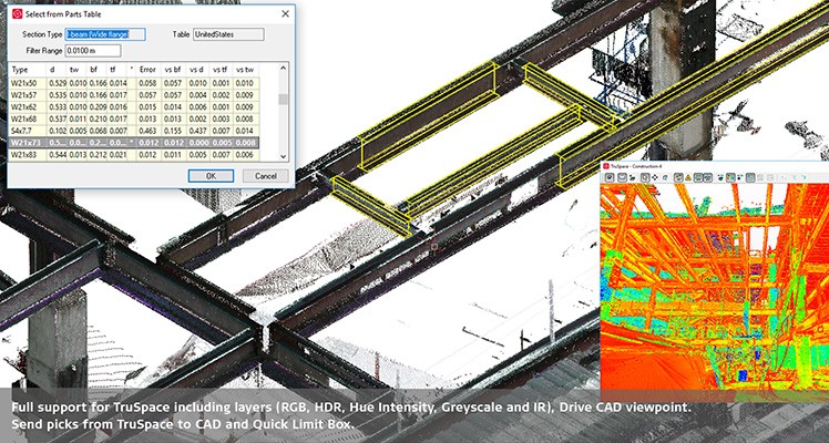 Professional Results CloudWorx for BricsCAD includes a professional toolset encompassing the full range of CloudWorx point cloud capabilities, including: Automatic linework Built in Floor Flatness/Floor Levelness repots to ASTM standards Piping and steel catalogues to speed projects to completion Simple collaboration When paired with Leica JetStream, CloudWorx for BricsCAD allows users across the office or around the world to collaborate on a project seamlessly. Access saved clips and limit boxes and sync versions to prevent redundant, outdated copies of data from causing confusion and inefficiency. Seamless integration Leica CloudWorx is integrated seamlessly with BricsCAD to shorten the learning curve for working with point cloud data. Access all the added features of CloudWorx along with the native tools in BricsCAD. Simply load a Cyclone or JetStream project or LGS file and instantly begin working with all your points in BricsCAD. InterCAD workflows CloudWorx users benefit from seamless project access between all CloudWorx product plug-ins. Work with CloudWorx project files saved from any plug-in to easily switch between programs and access features unique to each software.