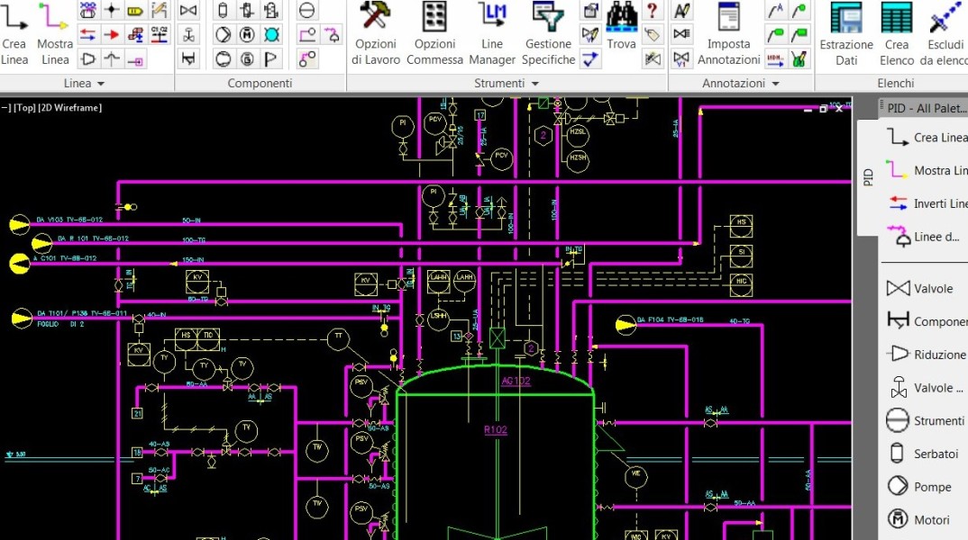 ESApro P&ID helps the engineer create intelligent piping and instrumentation diagrams. Thanks to the wide library of components, the powerful graphic functions of the program and under constant control of the piping spec, the user can easily create accurate drawings contemporarily getting automatic material lists.